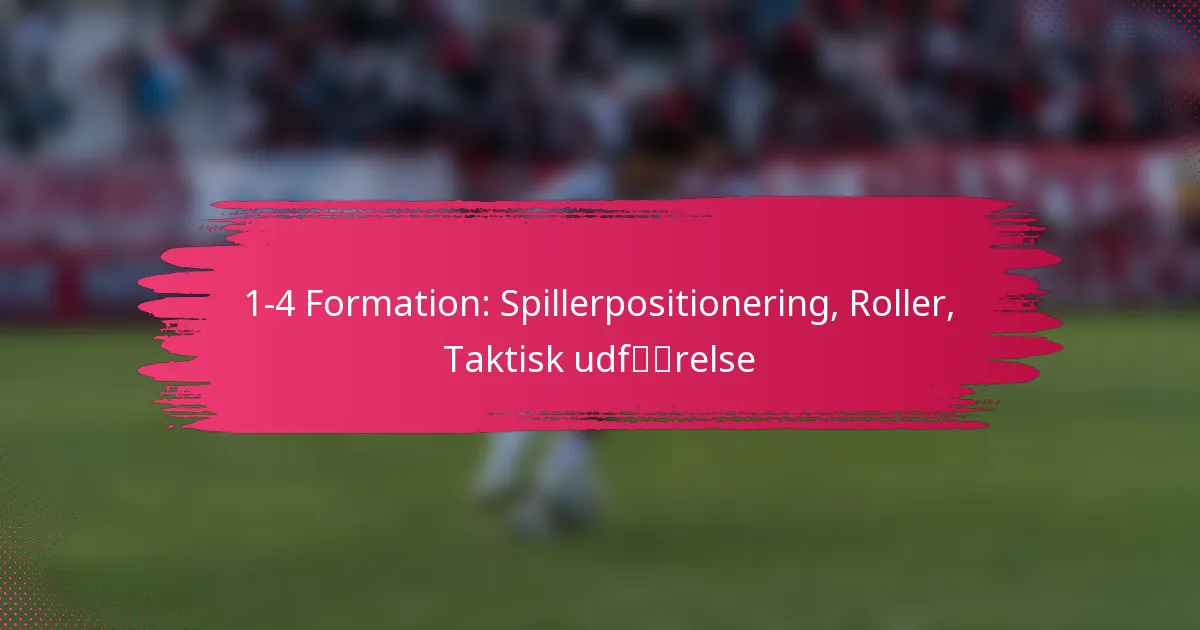 1-4 formation i fodbold er en strategisk opstilling, der inkluderer en målmand og fire forsvarsspillere, designet til at give et stærkt defensivt fundament, samtidig med at den muliggør en afbalanceret offensiv tilgang. Hver spiller inden for denne formation har specifikke roller, der forbedrer både defensiv stabilitet og offensiv effektivitet, hvilket gør det essentielt for hold at forstå disse dynamikker for optimal taktisk udførelse.