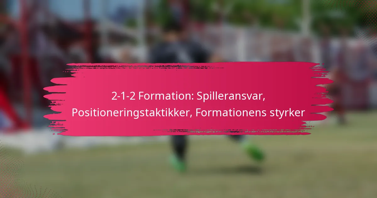 2-1-2 formationen er en strategisk opstilling, der lægger vægt på en afbalanceret tilgang til både forsvar og angreb med klart definerede spilleransvar. Ved effektivt at placere spillerne forbedrer denne formation midtbanekontrollen og muliggør hurtige overgange, hvilket gør det muligt for hold at tilpasse sig dynamisk under kampene. Dens styrker ligger i at dominere boldbesiddelse og udnytte huller i modstanderens formation, hvilket gør den til et alsidigt valg for forskellige spillestile.
