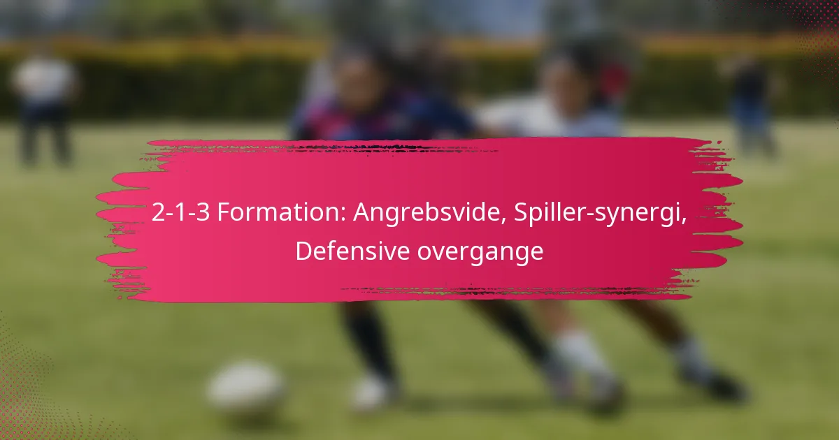 2-1-3 formationen i fodbold er en taktisk opstilling, der lægger vægt på både angrebsvide og defensiv stabilitet. Ved at placere to forsvarsspillere, en midtbanespiller og tre angribere, giver denne formation hold mulighed for at strække modstanderens forsvar og skabe scoringsmuligheder, samtidig med at den letter effektive overgange mellem angreb og forsvar. Spillersynergi spiller en vigtig rolle i at maksimere effektiviteten af denne formation, da samarbejde og kommunikation blandt holdkammerater forbedrer den samlede præstation på banen.